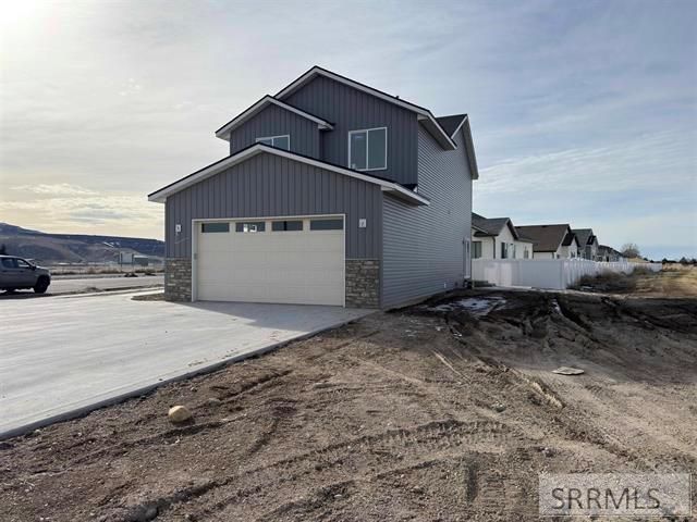 This beautiful two-story home features a thoughtfully designed floor plan with seamless flow throughout the main level, maximizing both space and functionality. Just off the garage, youll appreciate the convenient drop zone complete with a built-in bench and half bath, perfect for everyday living. Upstairs, the well-planned layout offers all bedrooms together along with a centrally located laundry room for added convenience. The kitchen is as functional as it is stunning, showcasing soft-close cabinetry and pull-out drawers for optimal organization and ease. The spacious primary suite is a true retreat, featuring dual sinks, a private water closet, a large walk-in shower, and an expansive walk-in closet. The unfinished lower level provides excellent potential to add a family room, fourth bedroom, and third full bathroom, ready for your personal touch. Additional highlights include full vinyl fence yard, room for RV parking, fiber internet availability for high-speed connectivity and Fort Hall irrigation to help reduce utility costs. Completed pictures are of previous built homes with this floor plan. Construction pictures will be updated as it progresses.