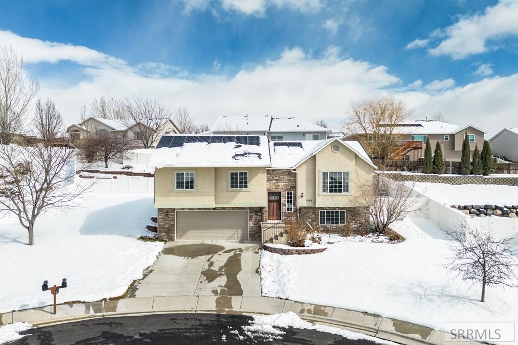 Amazing home on a low traffic Cul-de-sac. This beautiful home offers so much for its new family with 3 bedrooms and 3 full bathrooms, and a large 2 car garage. With its large open living room with vaulted ceilings and updated LED lights and chandeliers. The kitchen has gorgeous cabinets, a breakfast bar and stainless appliances throughout. The dining area has a large bay windows for lots of natural light. The Primary suite has large bay windows, walk in closets and a full primary bathroom. Downstairs hosts a huge family room with tile flooring, egressed windows for plenty of daylight and large laundry room with full bathroom. This home has an amazing fully vinyl fenced yard with patio and the most amazing flower bed going across the back. There is a storage shed for all your yard and gardening tools and full automatic sprinkler system. You will see on the roof is a full solar panel system to help keep the power bills down!! Professional pics will be uploaded in the next day or two