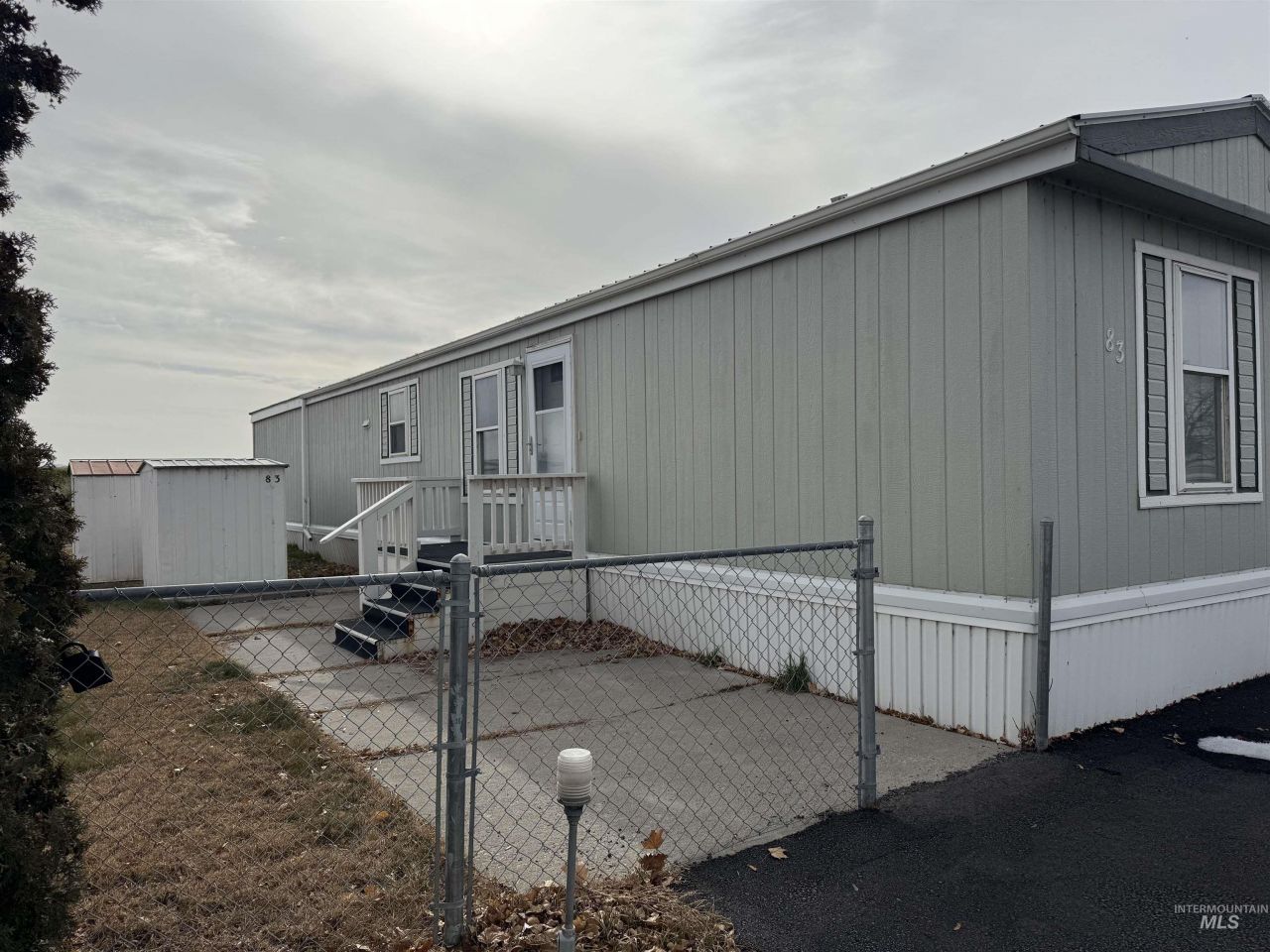 Well kept manufactured home with quiet location in Skylane Mfg Home Community. Split bedroom design and two full bathrooms. Metal roof is new. Park amenities include a clubhouse, playground and common area for sports and special events. No real property included. Water, sewer and garbage are included in space rent of $545 a month. Side deck with a fenced in area. There are 2 small storage sheds for extra items (one of the sheds belongs to the park). All buyers must be pre-approved through Skylane park.