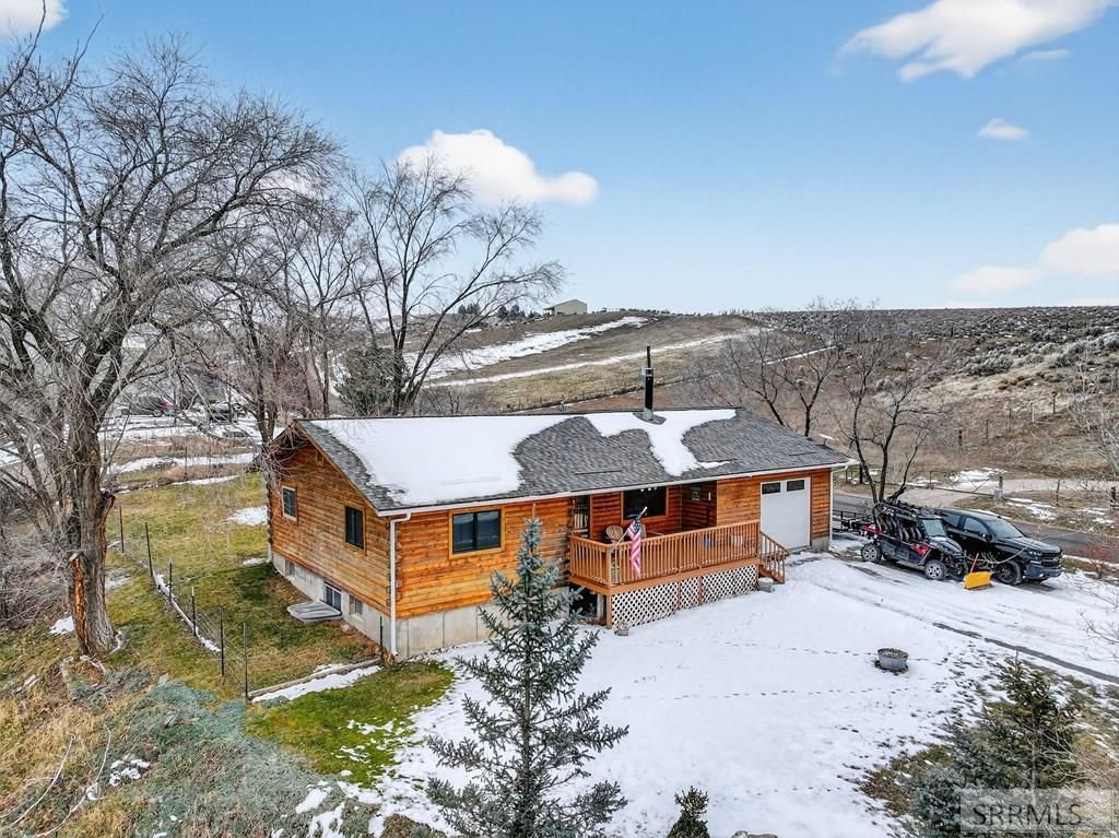 Perfect blend of tranquil countryside escape with convenient access to small-town amenities. 2.5 serene acres of prime rural living, this charming log home offers peaceful seclusion with a year-round stream adjacent to the property offering a scenic backdrop right from your doorstep. The inviting layout offers 2 bedrooms on the main floor and 2 bedrooms in the basement plus a den. 2 fully remodeled bathrooms and a stunning updated kitchen with modern finishes amid rustic log charm. Upstairs boasts fresh newer flooring, a cozy new pellet stove warms the basement efficiently. The roof with 50-year shingles, installed in 2023, ensures long-term protection. Solar panels keep energy costs remarkably low and private well and septic system for true off-grid independence. Outside, a handy storage shed with an attached greenhouse for your green thumb plus oversized single car garage and dedicated RV parking. Just 4 miles from the scenic American Falls golf course, local park, and the expansive American Falls Reservoir; a premier spot for endless recreational opportunities such as fishing, boating, waterskiing, and year-round outdoor recreation.
