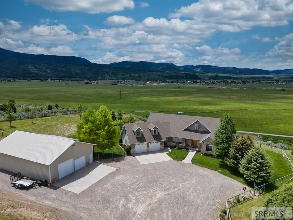 This stunning 3 bedroom/3 bath home on 5.56 acres in the Elk Ridge Subdivision offers breathtaking 360-degree views of the surrounding mountains and the expansive valley below. The spacious layout features the stunning scenery from every angle. The open-concept design seamlessly connects the living, dining, and kitchen area, making it ideal for both entertaining and everyday living. A modern kitchen equipped with high-end appliances and ample storage complements the inviting atmosphere. Step outside to enjoy two spacious decks, perfect for relaxing while taking in the picturesque landscape in the morning light and evening twilight. The exterior is beautifully landscaped, providing a serene environment that enhances the homes natural beauty. In addition, the property boasts a large 55x35 sq ft shop to meet your storage needs while providing a comfortable 450 sq ft accommodation for guests, which includes a bedroom, full kitchen and bath. Its extensive storage capabilities are perfect for working on projects, storing all your equipment and recreational vehicles, offering ample space for everything you need. At the bottom of the property, water and electricity have been installed, providing convenient access for a horse barn or an additional storage building.