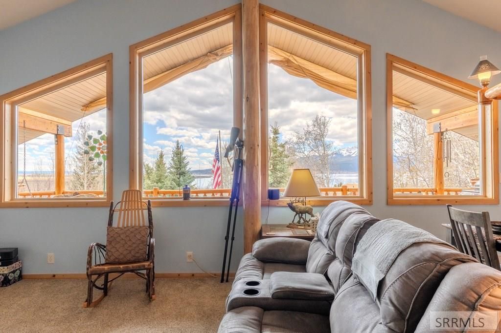 Breathtaking Henrys Lake Views Island Park Retreat with Flexible Use Potential. Enjoy sweeping panoramic views of Henrys Lake and surrounding mountain ranges from this beautifully crafted cabin set on a private, tree-covered lot just off Highway 87 and minutes from Yellowstone National Park. A subdivision boat launch with parking located just across the highway provides convenient access to Henrys Lake. A landscaped path leads to an elevated fire pit creating the perfect setting for sunset gatherings. Inside, the open-concept living area features expansive picture windows, a cozy propane fireplace and a handcrafted mural that adds distinctive mountain character. The kitchen includes custom cabinetry and a generous island ideal for entertaining. This 2-bedroom, 2-bath cabin with loft offers flexible sleeping arrangements and privacy with a bathroom on each level. Step onto the expansive covered deck to take in the lake views year-round. The attached garage includes a storage/pantry area with space for recreational gear. Sold fully furnished, this property is ready for immediate enjoyment as a vacation rental, seasonal retreat, or full-time residence. Call the listing agent today for additional details or to view this amazing property.