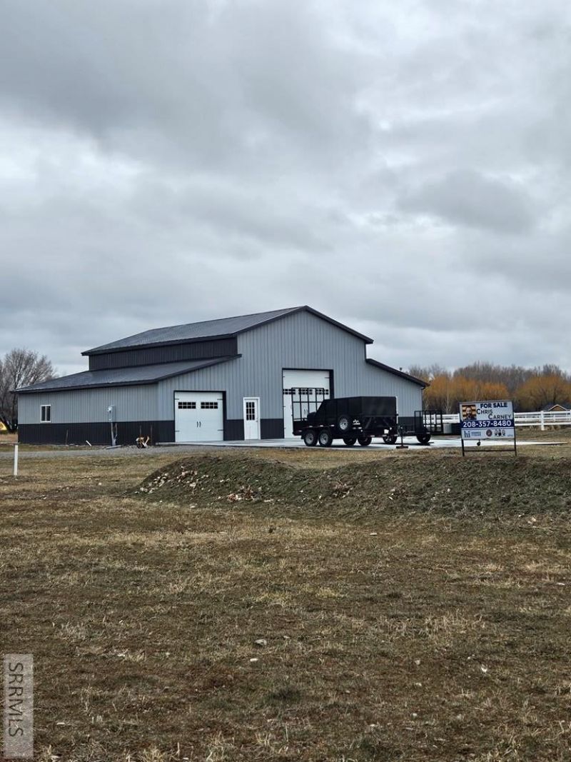 Barndominium / Shopdominium offering the ideal combination of living space and workspace. The overall building measures 50 x 60 (approx. 3,000 sq ft) and includes a 900 sq ft one-bedroom, one-bath apartment (50 x 15) with an open living area, kitchen with stainless appliances, and concrete floors. The remaining 2,500 sq ft shop (50 x 50) features large overhead doors, high ceilings, and ample room for vehicles, equipment, or projects. A 15 x 15 loft (approx. 500 sq ft) provides additional storage or workspace above the shop area. The property is heated by a two-zone radiant floor system powered by a NAVIEN combi boiler, providing efficient heat throughout the building, and the outside patio is also equipped with radiant heat for year-round comfort. A versatile property with modern mechanical systems and abundant shop spaceideal for those needing room to live, work, and store equipment all in one place. --BUYER TO VERIFY SQUARE FOOTAGE
