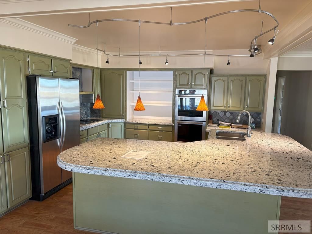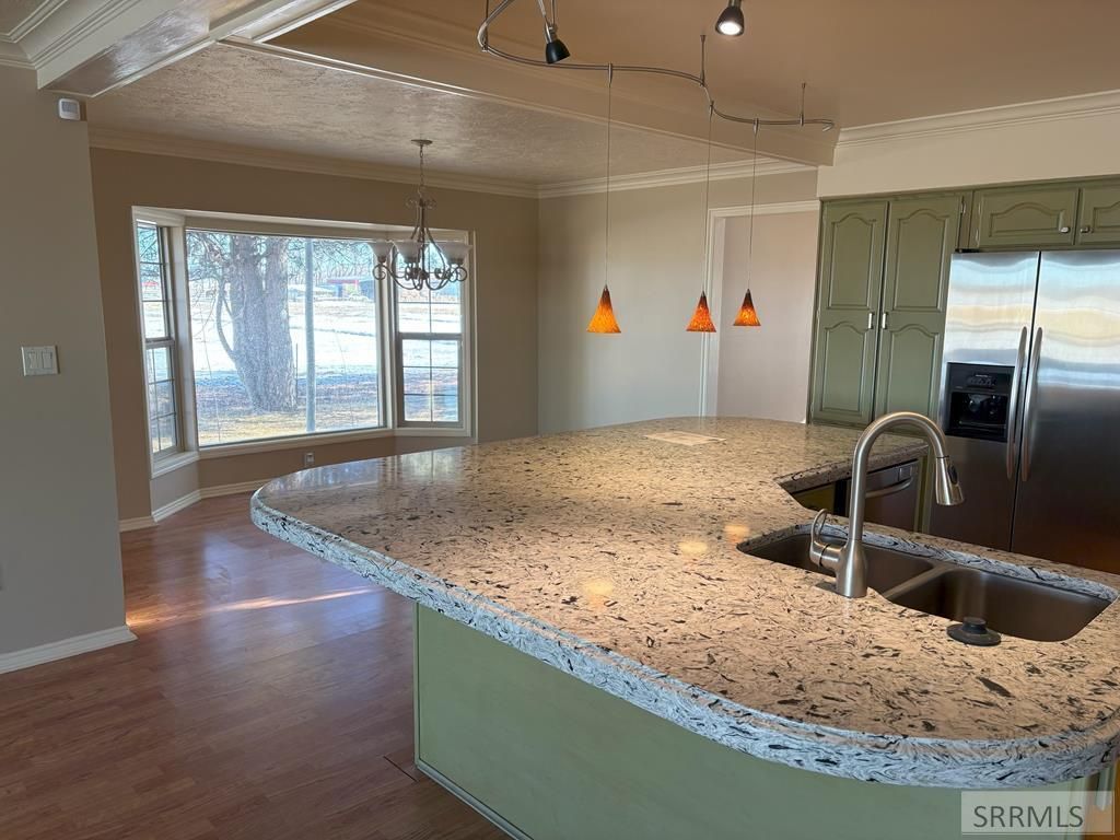 Nestled on a serene 1.5-acre parcel down a private lane between Rigby and Ririe, this custom cottage-style residence offers the perfect blend of charm, privacy, and modern comfortjust 20 minutes from Idaho Falls shopping and amenities. The heart of the home is a beautifully updated gourmet kitchen designed for both function and gathering. Rich maple cabinetry pairs perfectly with gleaming quartz countertops and a large center island with seating. High-end stainless steel appliances include a electric range with double ovens, French-door refrigerator and quiet dishwasher. A deep farmhouse sink, classic tile backsplash, under-cabinet lighting, and a spacious pantry complete this chefs delight. Four spacious bedrooms and 2.5 baths provide ample room for family and guests. The expansive master suite is a true sanctuary, featuring panoramic views, vaulted ceilings, direct access to the deck, and a private hot tub perfect for evening relaxation. Elegant formal living and dining rooms with custom trim work flow gracefully into light-filled family spaces. Double car supersized garage features a large separate workshop room. Outside, mature perennial flower gardens, lush lawns, and towering shade trees create a park-like oasis that blooms vibrantly from spring through fall.